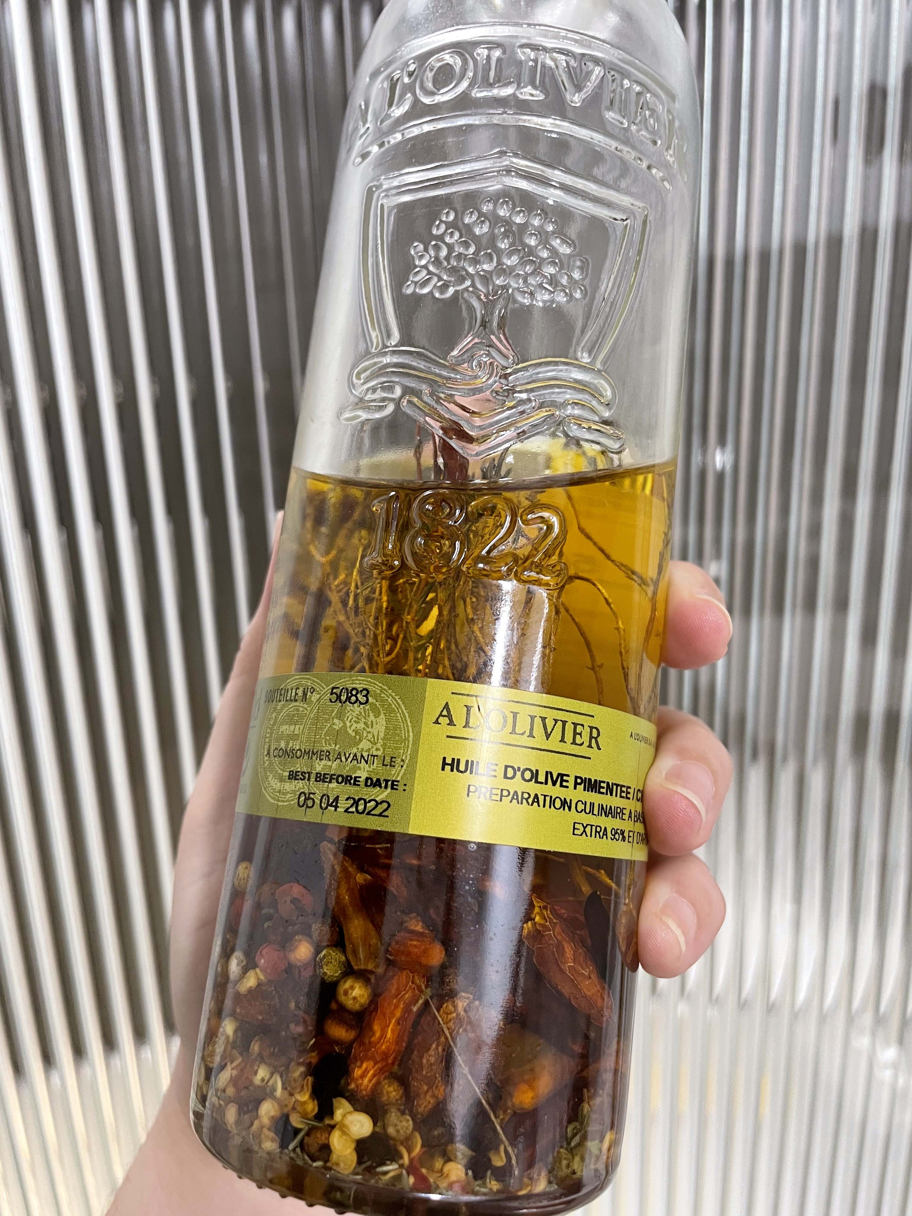 제가 사용하는 알 올리비에 칠리와 허브 올리브 오일입니다. 각종 고추 알갱이, 칠리 로즈마리 타임 등이 들어 있어 이 오일만 뿌려도 고기나 샌드위치에 다른 소스가 필요하지 않다. 해외에 다녀오신 분의 선물이었는데 한국에서는 구하기 힘든 것 같습니다. 고추올리브유가 없으시면 꼭 다진고추를 넣어주세요.